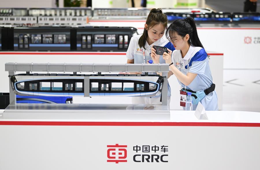 6月20日,志愿者在博览会智能交通与智能建造展区参观。新华社记者 孙凡越 摄