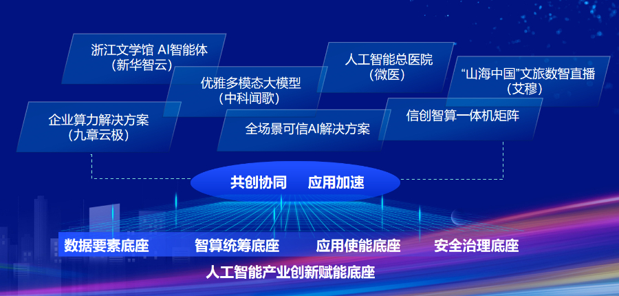 会上,基于数字经济人工智能产业创新赋能底座,新华网发布2025首批生态共创产品。新华网推出“全场景可信AI解决方案”“新华网信创智算一体机矩阵”“浙江文学馆AI智能体”等。同时,新华网联合生态合作伙伴九章云极,提供企业算力解决方案;携手中科闻歌,用“优雅多模态大模型”赋能国际传播;与微医共同升级区域健共体引擎——人工智能总医院;与南京艾穆推出“山海中国”文旅数智直播解决方案。