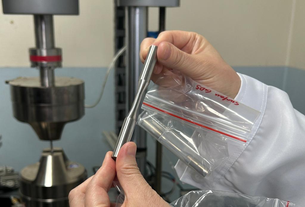 科研人员展示经加工改造后的金属材料样品。新华社记者刘祯 摄