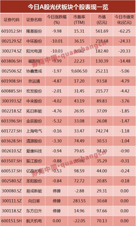 尽管经过周末两天的发酵, A股、港股市场光伏概念股不可避免迎来下跌。
