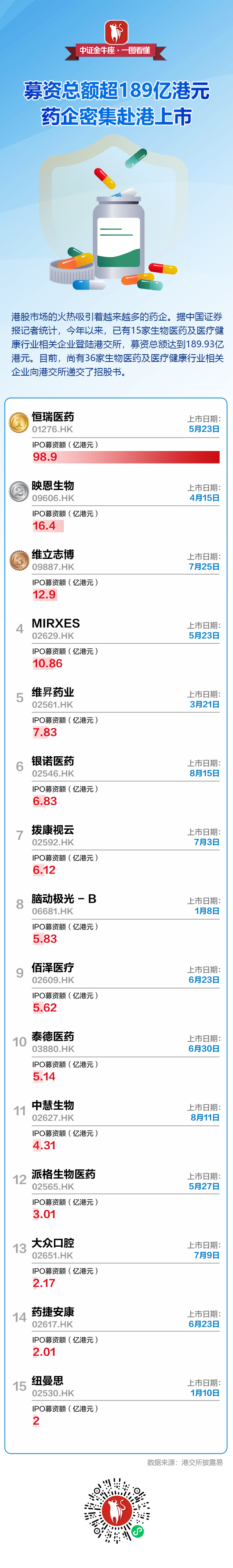 【一图看懂】募资总额超189亿港元,药企密集赴港上市
