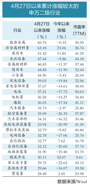 Wind数据显示,4月27日至6月13日期间,上证指数、深证成指、创业板指累计涨幅分别达到12.79%、17.56%、18.41%。