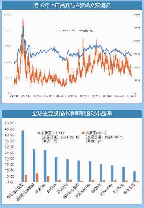 Wind数据显示,截至8月20日,万得全A滚动市盈率为15.48倍,市净率为1.35倍,沪深300滚动市盈率为11.51倍,市净率为1.25倍。从历史数据来看,当前万得全A和沪深300市净率和滚动市盈率均处于历史底部区域。