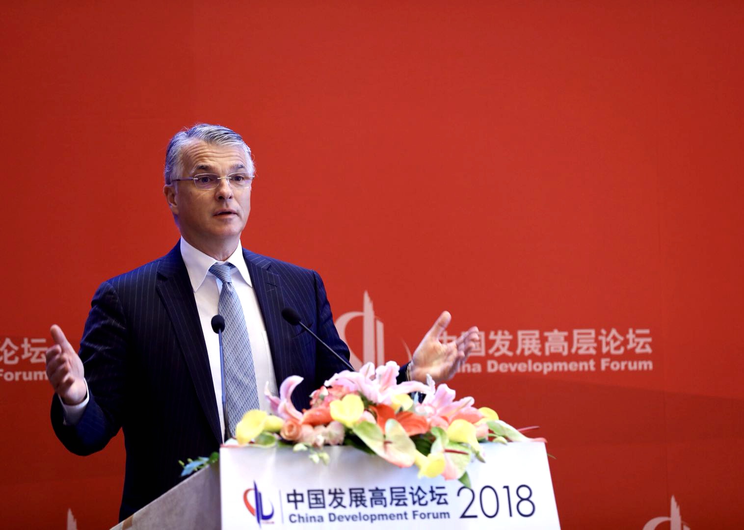 安思杰(瑞银集团首席执行官)发言。(摄影/本报记者 车亮)