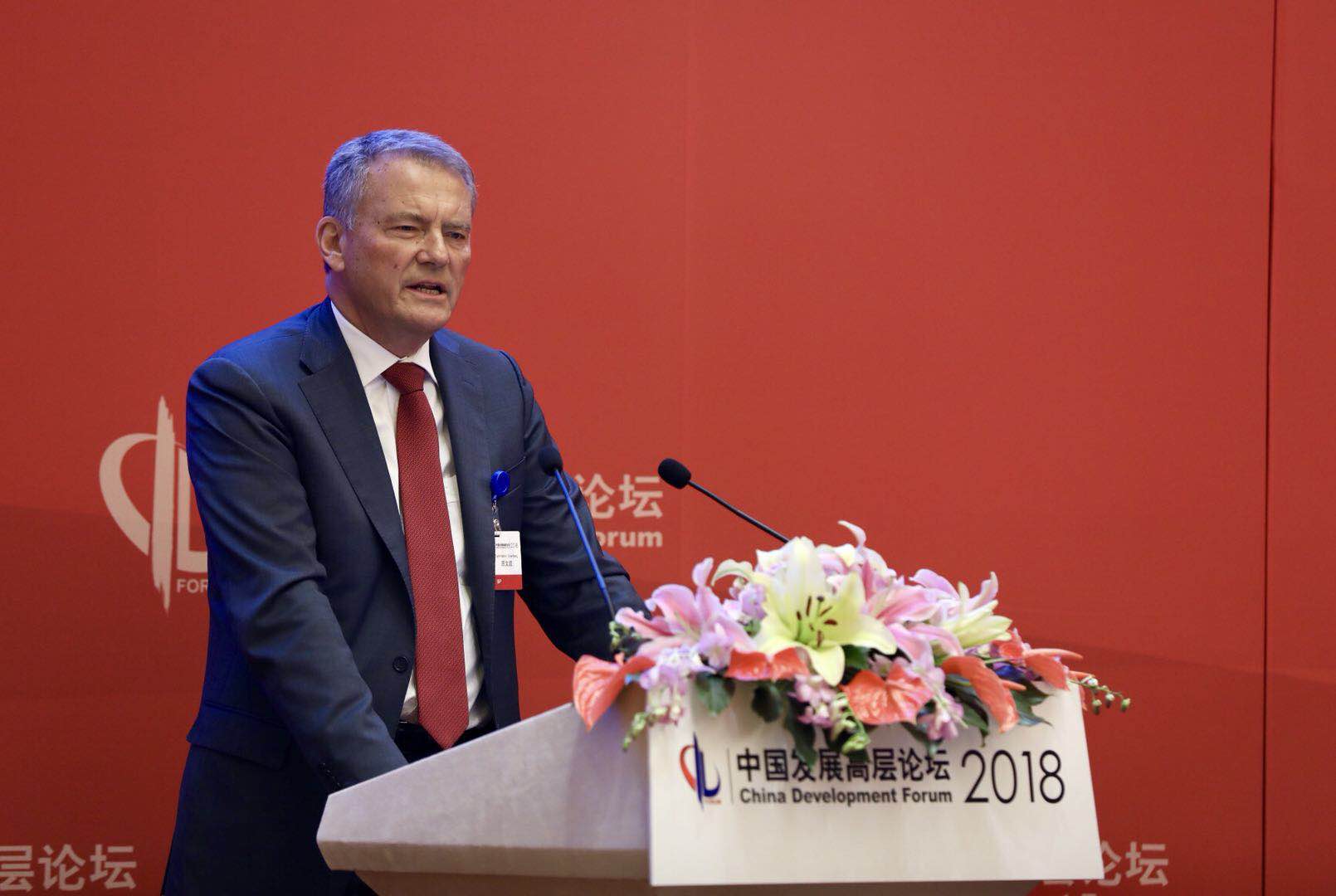 (国石油公司董事长思文凯发言。(摄影/本报记者 车亮)