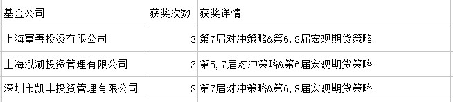 备注:2013年第五届金牛奖开始设立对冲策略奖项(参评产品策略为相对价值及宏观期货策略;在2014年第六届金牛奖时,对冲策略奖项拆分成相对价值策略及宏观期货策略奖项;2015年第七届金牛奖又恢复为对冲策略奖项;在2016年第八届金牛奖重新拆分成相对价值策略及宏观期货策略奖项。因此将这几类奖项并在一起统计。