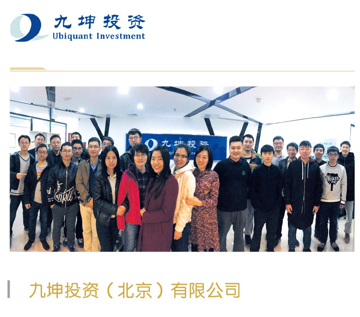 九坤投资基于国际前沿的量化交易、高频交易策略,发掘 国内股票、期货市场的交易机会,为投资者提供高确定性、 绝对收益的投资产品。公司立足策略创新和技术领先,团 队核心骨干均有多年国外对冲基金的工作经验。公司2016 年产品平均收益率12.54%,回撤仅-0.11%,为投资者获取 稳健收益。