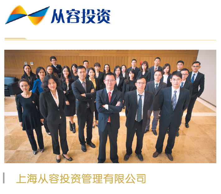 从容投资集团是国内知名老牌私募基金管理公司。公司成立 近十年,管理资产规模过百亿。公司特长于管理运作宏观对 冲基金。宏观投资,投资涵盖股票、债券、商品及金融衍生 品。通过大类资产配置比例调整,始终布局机会最确定的资 产类别,获取全天候收益。旗下首只宏观投资基金成立于 2012年底,每个单独年份均实现绝对收益。