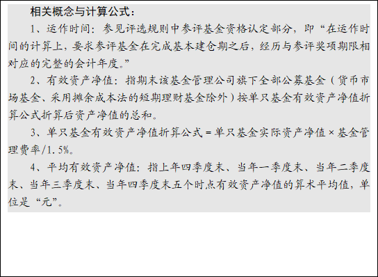 此外,根据《证券投资基金评价业务管理暂行办法》第十四条第二项的规定,不得“对同一分类中包含基金少于10只的基金进行评级或单一指标排名”,截至目前,在评选考察期限内,QDII基金、避险策略基金所属分类中包含基金少于10只,暂不参加评选。