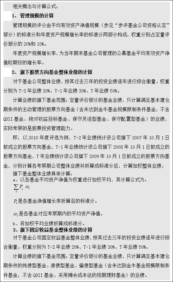 a、定量评价权重70%,其中对基金管理公司的债券型基金的投资管理能力进行综合评价,权重70%;对债券基金的规模管理能力进行评价,权重30%。算法见后文。