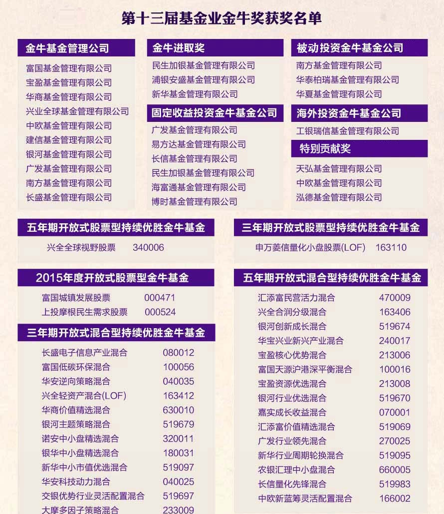 第十三届基金业金牛奖获奖名单