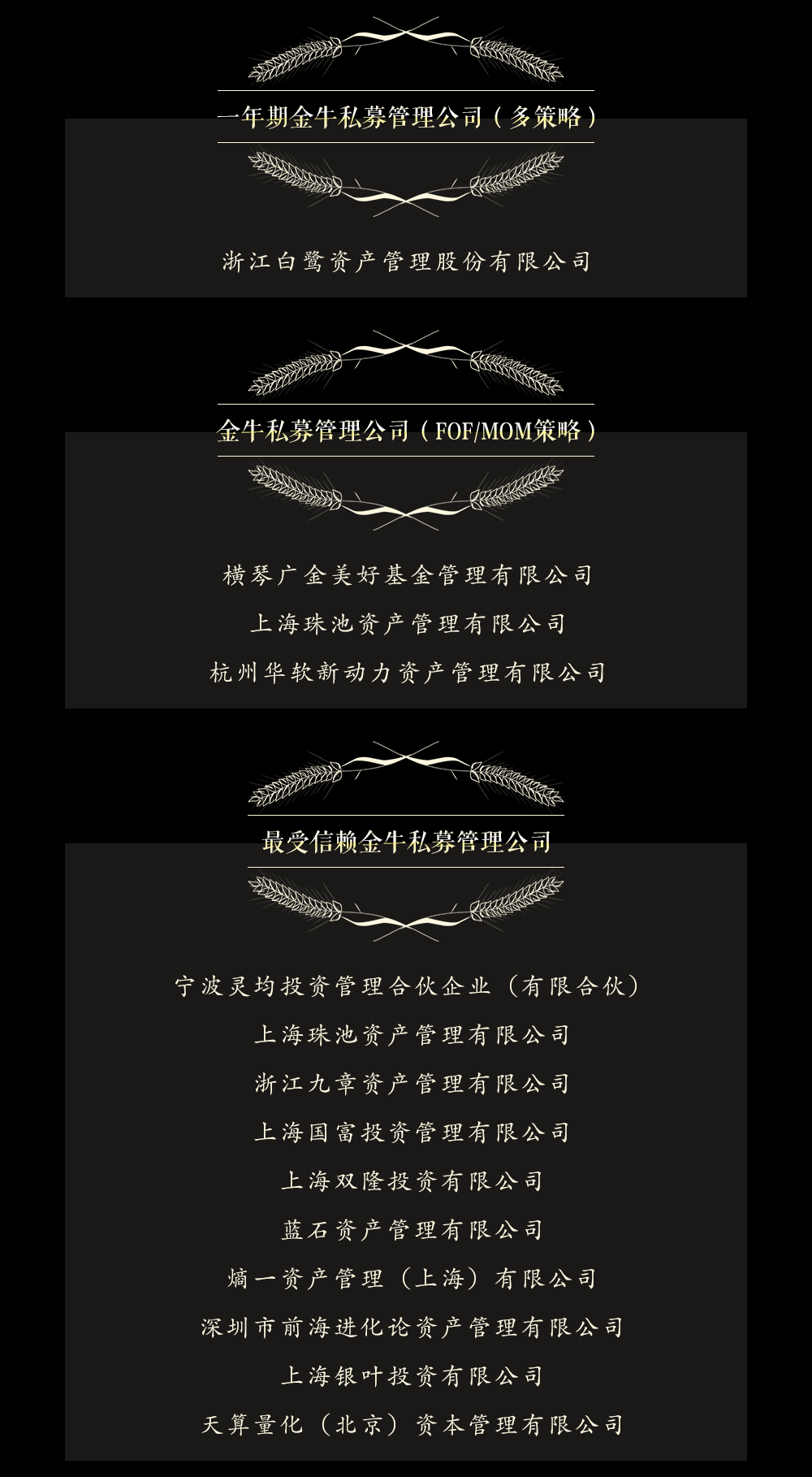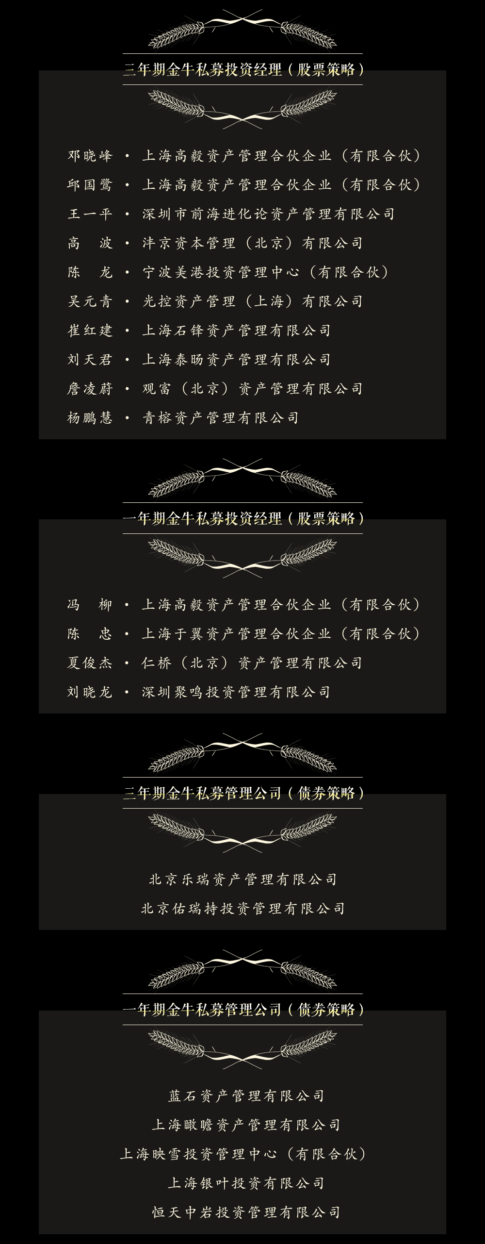 伴随中国私募基金行业的发展壮大,中国证券报主办的私募金牛奖评选迎来第十届。作为中国私募基金行业快速发展的见证者和亲历者,私募金牛奖评选汇聚多家专业基金评价机构的智慧,以定量指标为依据,坚持公开、公正、公平原则,已成为引领中国私募基金行业健康发展的一面旗帜。