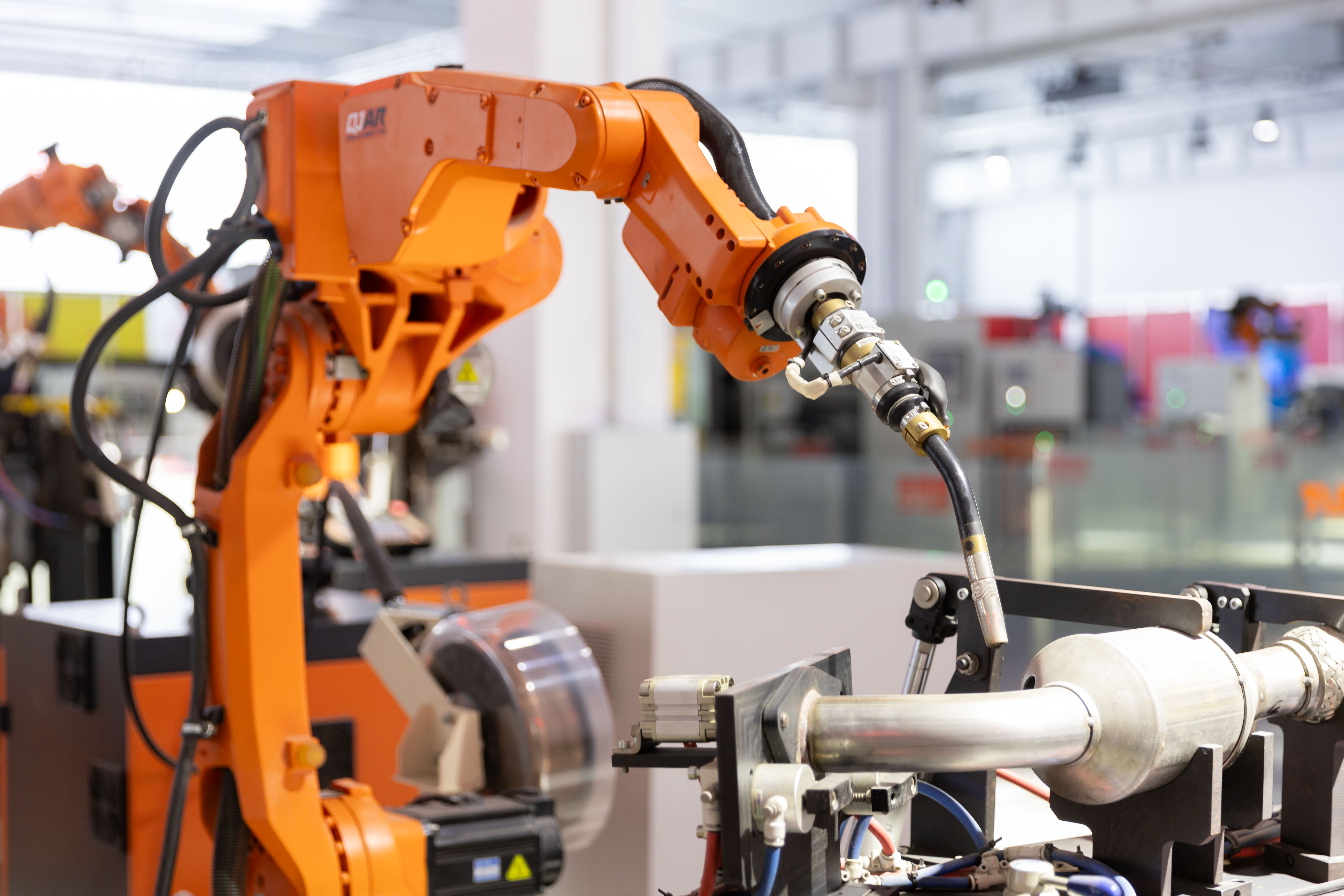 5月25日,在上海爱仕达机器人有限公司智能谷,工业机器人模拟焊接工作。走进位于上海市青浦区的上海爱仕达机器人有限公司,映入眼帘的是一台台“各怀绝技”的工业机器人。