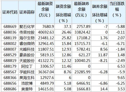 首页>科创板 12只科创板股融资余额增幅超5% 证券时报网2021-02-04 09:06 证券时报网讯,证券时报·数据宝统计显示,2月3日共有86只科创板个股融资余额环比增加。其中,12股融资余额增幅超过5%。融资余额增幅较大的有聚石化学、传音控股、海尔生物等股。