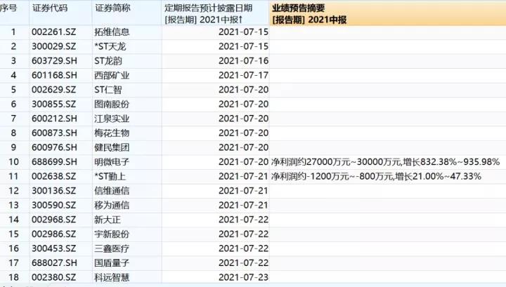 半年报预计披露时间靠前的公司中,明微电子、*ST勤上两家公司目前已披露了半年度业绩预告。