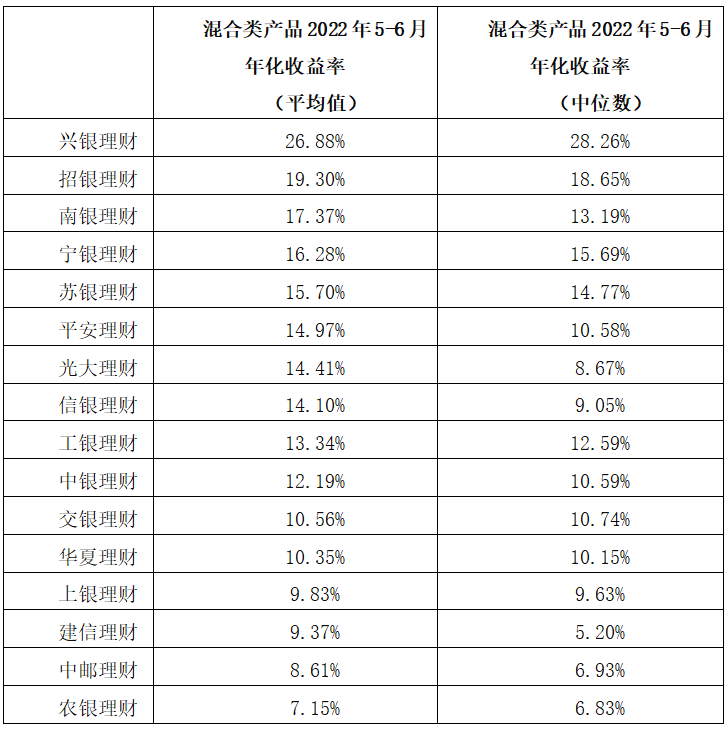 从实现正收益的能力看,上银理财、宁银理财、农银理财、苏银理财和光大理财混合类产品年化收益率平均值和中位数均取得了正收益,体现了较强的风控和绝对收益能力。