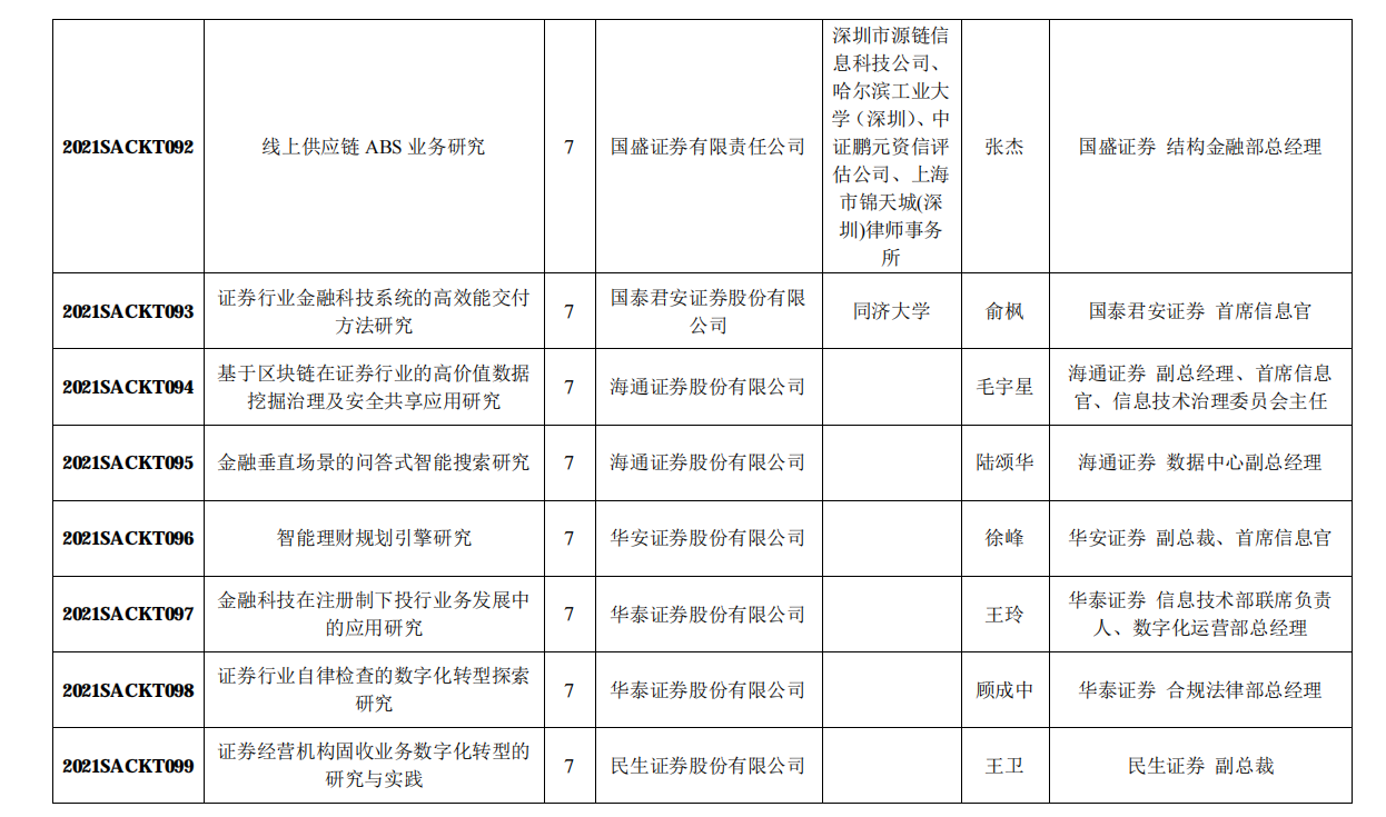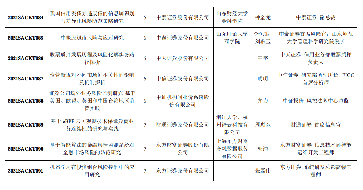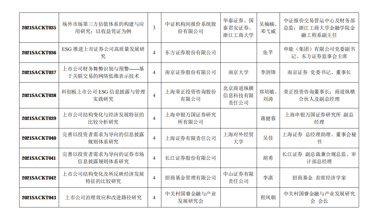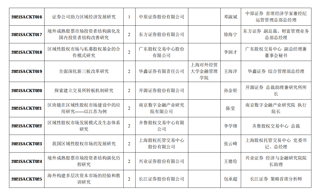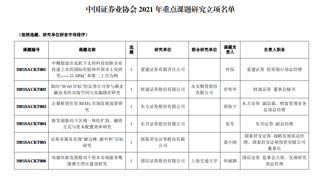 附:中国证券业协会2021年重点课题研究立项名单