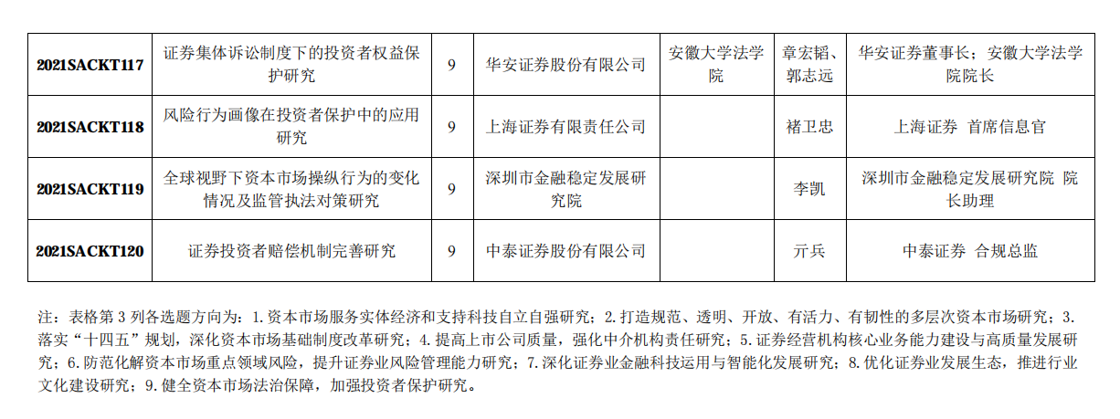 中国证券业协会公布2021年120项重点课题研究立项名单