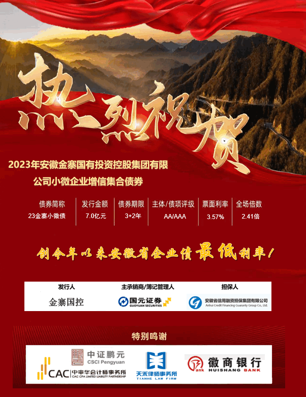 “23江南债”和“23金寨小微债”是2023年度安徽省首批亮相的小微企业债。小微企业债的成功发行为小微企业提供了流动性资金支持,有效缓解小微企业融资难、融资贵的问题,促进小微企业发展壮大,进一步推动当地经济持续发展。“23兴达盛债”是响应国务院《促进皖北承接产业转移集聚区建设的若干政策措施》,聚焦皖北经济发展、振兴乡村、推动产业转型的重要体现。募集资金用于阜阳颍东区安置房项目,募投项目是“让拆迁安置户搬得出、有房住、住得好、能发展”的民心工程,有效加快城市基础设施建设步伐,优化城市空间结构,完善城市功能,对当地的经济发展、社会稳定及构建和谐社会意义重大。目前国元证券主承销的企业债总额达到78.25亿元,承销排名位列全国第7位,首次挤进全国前十,创历史最佳水平。