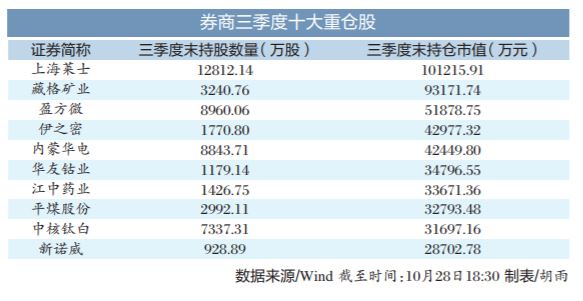 券商三季度重仓股揭晓 三大行业标的更受青睐