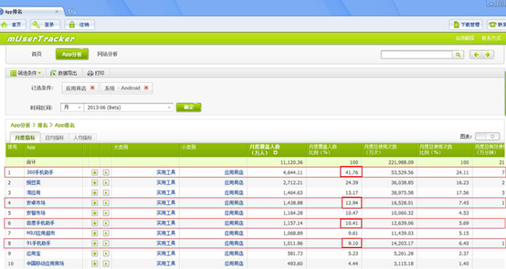 百度以19亿美元天价收购91无线,引发业界持续关注。近日,国内权威市场调研机构艾瑞统计数据显示,91手机助手月度覆盖人群占9.1%,不仅难企及排名第一的360手机助手41.76%的占有率,甚至落后于百度旗下其他两款APP应用——安卓市场和百度手机助手,后两者的活跃人群覆盖比例为别为12.94%和10.41%。到目前为止,百度可能还是在“赔钱赚吆喝”。