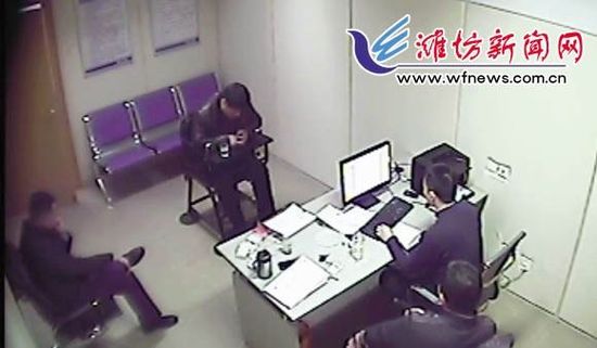 犯罪嫌疑人刘某正在接受民警讯问