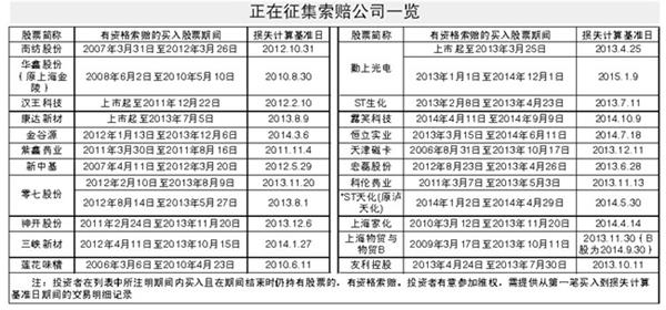 除莲花味精以外,“大众维权易”正在针对南纺股份、华鑫股份、汉王科技、康达新材等二十二家公司展开索赔维权征集行动,南纺股份、华鑫股份、汉王科技、康达新材这四家公司此前已有投资者拿到赔偿。