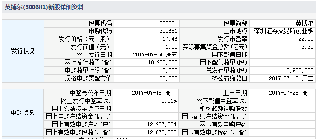 根据交易所公告,珠海英搏尔电气股份有限公司于2017年7月25日起在深圳证券交易所创业板上市交易。