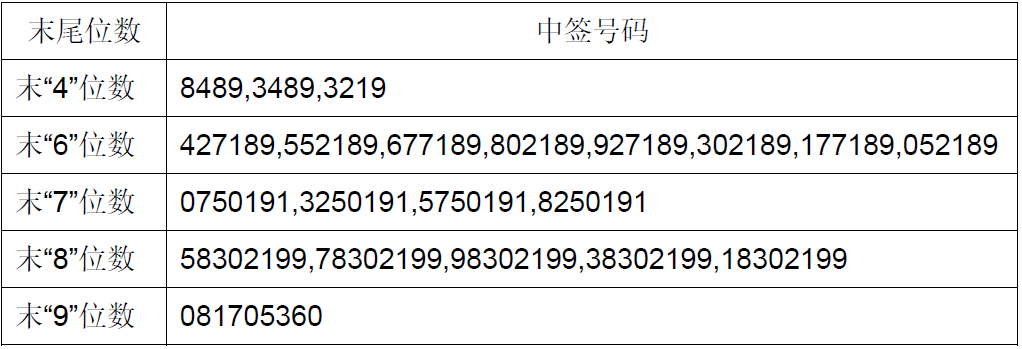 凡参与网上发行申购赛腾股份A股股票的投资者持有的申购配号尾数与上述号码相同的,则为中签号码。中签号码共有36,000个,每个中签号码只能认购1,000股赛腾股份A股股票。
