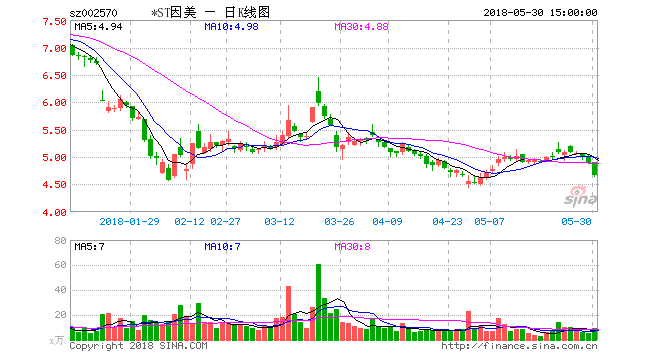 上市7年来,贝因美公司股价从最高50.88元/股跌至4.66元/股(5月30日);市值从2015年的最高300多亿元跌落到约50亿元;营收从最高峰的61亿元(2013年),到目前的26.6亿元(2017年);净利润从最高7.2亿元到亏损10亿元(2017年);公司股票被“披星戴帽”,这就是国产奶粉龙头企业贝因美今天的真实写照。