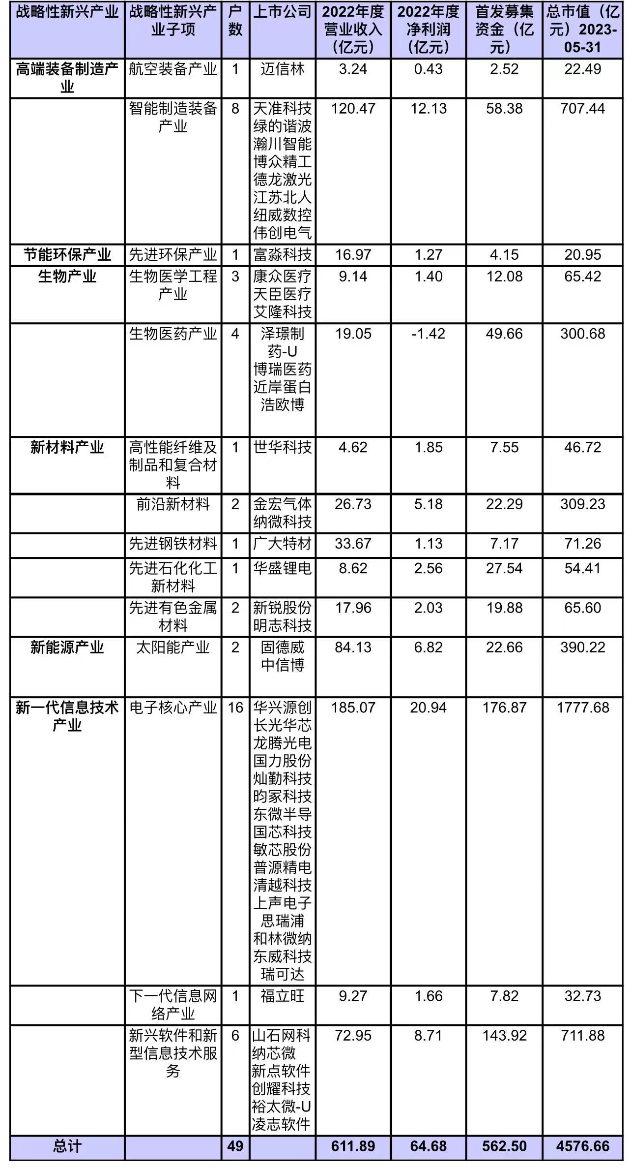 苏州科创板块业绩良好,成长性保持高位。截至2023年5月末,已上市的苏州科创板上市公司IPO融资总金额达562亿元,总市值4577亿元。整体来看,科创板表现出良好的成长性,业绩保持较快增长。2022年度,苏州科创板公司共计实现营业收入612亿元,两年复合增长率达27%;实现净利润65亿元,两年复合增长率达13%。近八成公司营业收入增长,20家公司营收翻番;近六成公司净利润增长,6家公司增幅在100%以上,最高达192%。