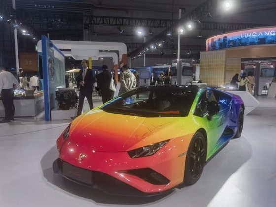 临港展示区全球首台兰博基尼“进博” 限定艺术跑车 本报记者 乔翔 摄