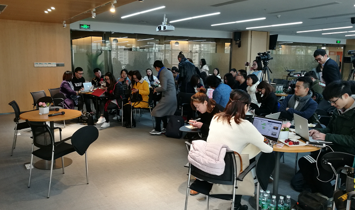 众多媒体已在会场等待郁亮和祝九胜的出现