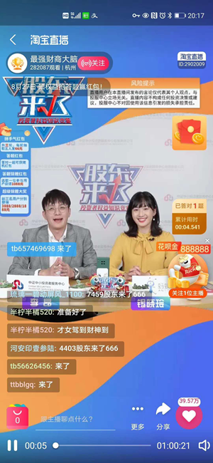 据介绍,本次直播由财经网红“添财酱”和第一财经主持人李昂担当主播。直播开始后,两位主播以轻松幽默的方式介绍了《股东来了》2020的背景、目的、玩法、答题规则和奖励规则。在互动答题环节,投服中心精选了六道题,涵盖新《证券法》、科创板、创业板、新三板等资本市场重大改革部署相关内容,每道题目都与投资者密切相关。