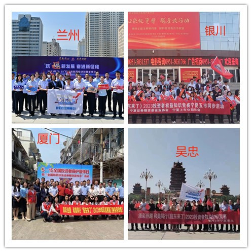 同日,福建赛区开展辖区动员会,辖区近200位证券期货分支机构负责人参会,同时举行了《股东来了》点亮福州仪式;山东赛区在省会济南泉城广场、著名景点趵突泉开展打卡宣传,让竞赛活动贴近百姓生活;河南赛区广泛动员辖区机构积极参赛,中原证券走进上市公司、走进社区、走进高校等活动有序开展,郑州、洛阳2市城市圈同步点亮;广东赛区积极响应,召开启动仪式,点亮地标建筑广州塔,用最美霓虹传递大投保精神;广西赛区组织投资者及证券从业人员走进国海证券、安信证券投资者教育基地,用一堂投教精品课点亮城市圈;宁夏赛区联合南京证券投资者教育基地、辖区各证券期货经营机构围绕“添彩丝路 和美同行 股东来了 我们来了”活动主题,同时点亮银川、吴忠、固原、中卫、石嘴山5市,将《股东来了》(2023)火种传遍赛区;厦门赛区举办赛区启动仪式,诚邀投资者进行扫码答题,提供现场咨询和答疑解惑,营造全民学习金融知识的氛围,引导投资者“全面知权、积极行权、依法维权”;青岛赛区结合辖区“投资者教育和保护百日讲坛”品牌活动积极开展活动宣传推广,并在城市地标的五四广场点亮城市圈。