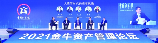 资管大时代,阔步新征程。在“2021金牛资产管理论坛暨第十八届基金业金牛奖颁奖典礼”圆桌论坛上,银华基金总经理王立新、上投摩根总经理王大智、信银理财副总裁贺晋、上海证券交易所创新产品部副总监叶武、博时基金资产配置投委会副主任委员张存相“坐而论道”,探讨在资产管理大时代的“星辰大海”中,资产管理机构如何上下求索,行稳致远。