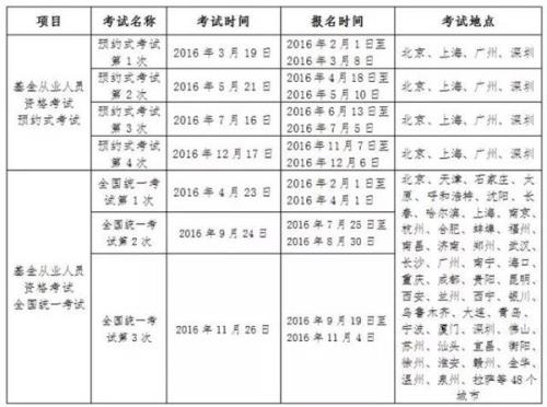 答:(一)关于基金从业资格考试安排。基金从业资格考试包含全国统一考试和预约式考试,2016年度基金从业资格考试计划安排见下表。