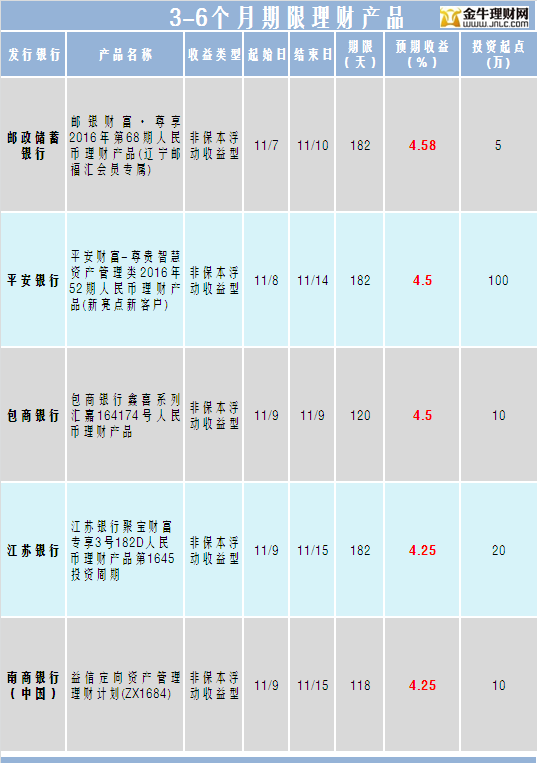 金牛理财网11月9日银行理财收益榜