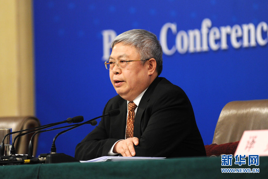 3月7日,十二届全国人大五次会议新闻中心举行记者会,邀请国务院扶贫办主任刘永富就“脱贫攻坚工作”的相关问题回答中外记者的提问。 图为刘永富回答记者提问。新华网/中国政府网 孙韬 摄