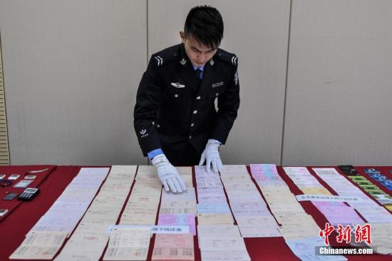 警方展示地下钱庄涉案物品(资料图)。中新社记者 陈骥旻 摄