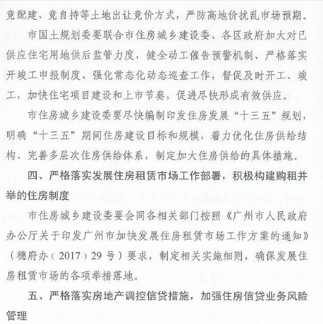 据广州市住房与城乡建设委员会网站消息,广州市8月2日发布《关于严格落实房地产调控部署全面加强市场管理的通知》,通知要求①坚决对预售/销售定价不合理的项目予以调整,不接受政府价格指导的项目一律不核发预售许可证/不予办理交易网签备案;②将会同各相关部门制定实施细则,确保发展租赁市场的各项举措落地;③严格落实土地供应计划,多措并举加大商品住房供应;④严格落实房地产调控信贷措施,加强住房信贷业务风险管理。
