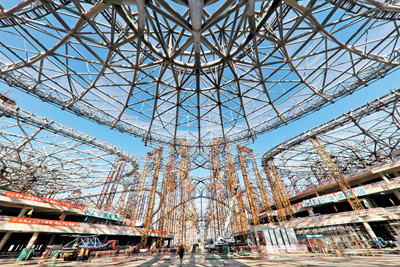 北京新机场航站楼钢结构封顶。