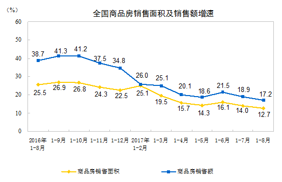 表1 2017年1-8月份全国房地产开发和销售情况
