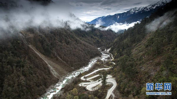 崇山峻岭竖立巍巍铁塔,悬崖深涧架起悬索大桥,茫茫戈壁建成光伏电站、千年冻土修筑高原天路……一项项刷新世界纪录的大国工程,传递着民生温度。图为鸟瞰西藏墨脱公路(3月30日摄)。新华社记者普布扎西摄