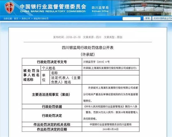 处罚中提到,此案暴露出浦发银行成都分行存在诸多问题: