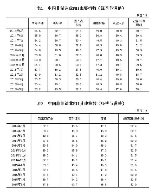 自2015年起,非制造业PMI发布时间由原来的每月3日变更为每月1日;同时,为了使公众更容易理解指标含义,将原“中间投入价格指数”改为“投入品价格指数”,原“收费价格指数”改为“销售价格指数”。