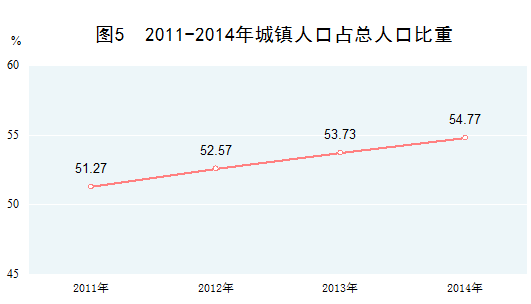 新型城镇化稳步推进。2011年末,城镇人口首次超过农村人口,城镇化率突破50%,2014年进一步提高到54.77%,2011-2014年城镇人口每年增加近2000万人,带动了巨大的投资和消费需求。与此同时,稳步推进农民工市民化,我国城镇化不仅有量的扩大,更有质的提升。
