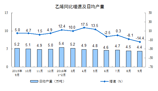 分产品看,9月份,统计的589种主要产品中有341种产品同比增长。其中,钢材9809万吨,同比增长4.3%;水泥22393万吨,增长2.9%;十种有色金属452万吨,增长2.7%;乙烯132万吨,下降14.4%;汽车257.6万辆,增长31.5%;轿车113.0万辆,增长29.9%;发电量4913亿千瓦时,增长6.8%;原油加工量4380万吨,增长2.4%。