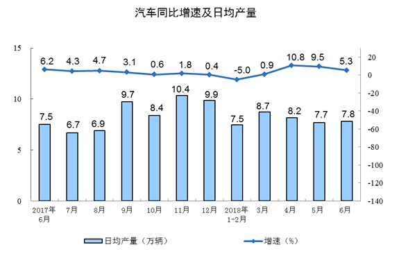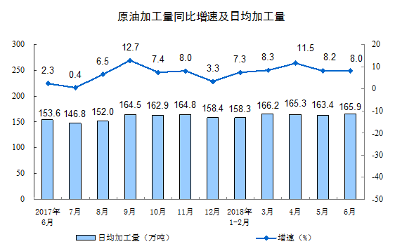 2018年6月份规模以上工业生产主要数据