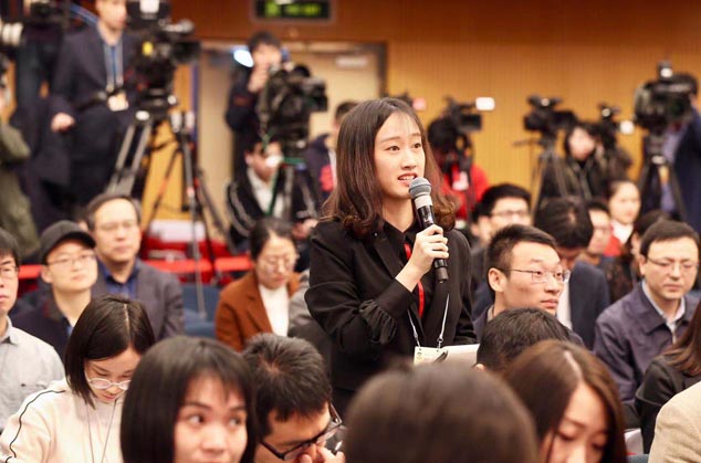国资委副主任翁杰明回答中国证券报记者提问。(摄影/本报记者 车亮)